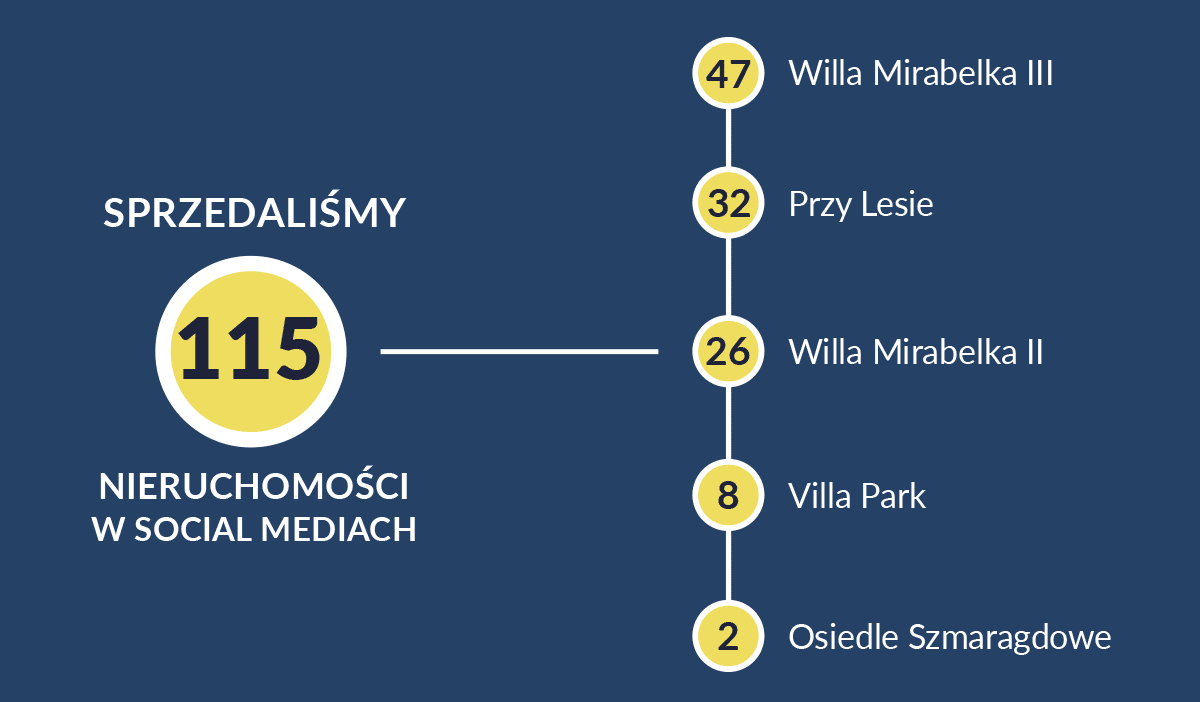 Wielkim sukcesem naszej współpracy z podwarszawskim deweloperem jest fakt, że już w pierwszym miesiącu działań sprzedaliśmy pierwsze dwie nieruchomości dla klienta i przez te wszystkie lata udowodniliśmy, że właściwie zaprojektowana komunikacja w mediach społecznościowych może być bardzo skuteczna.